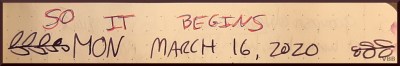 Some point in here. I had my annual medical check-up scheduled for the following Wednesday. I wondered about going. Called clinic, which is attached to hospital. They said, ‘Oh-sure-fine-come in.’ Really? Later, they called to cancel. Ya think?!