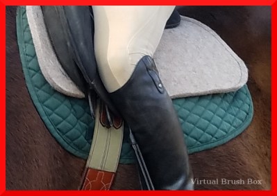 New-to-us saddle pad & hind boots from the tack sale at the show. Both at prices low enough to be worth taking a flyer on. [Guest Photos, Shopping]