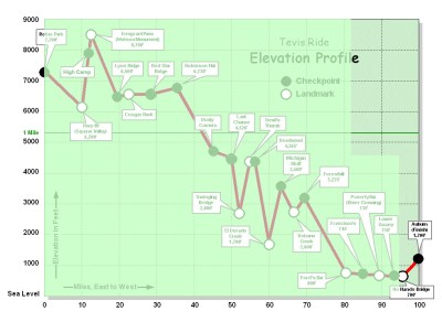 Map. 81& 95 miles in. Graphic from Tevis Cup: About the Trail, shading mine.
