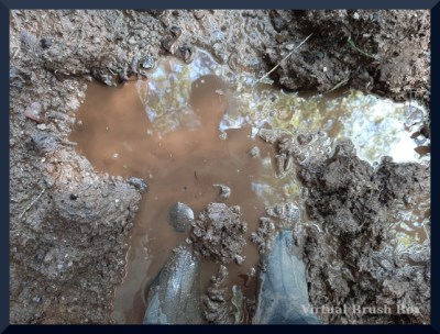 No boots were sucked off in the staging of the mud photo. But it was a close thing. Puddle chosen for maximum dramatic effect. Horses do not walk through this.