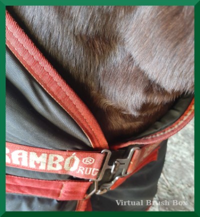 In our – feeble – defense, this was during the undressing. The temps suddenly dropped below 50 during the nights last week. Rodney hates the cold and has an high tolerance for warming devices. He has been wearing the lighter blanket at night. This particular night was the last of this go-round. He will take a break as the nights get more seasonable and then return to pajamas for winter, such as it is down here. As a bonus for the rider, the blanket keeps his back loose and his attitude perky. [Piling on the Therapy]