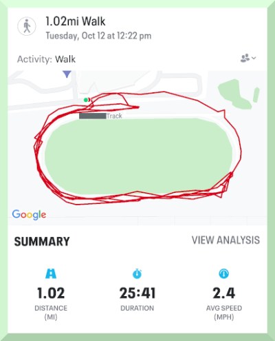 Unnamed Elementary School. Track open to public (I checked) but on school property. Kids came out for recess in upper right area. Teacher said walking around the track was okay. I chose not to. I don’t understand the rules around kids – even the non-Covid ones, so I err on the side of radioactivity. Probably wouldn’t go back. Track has access to cross-country track, also open to public.