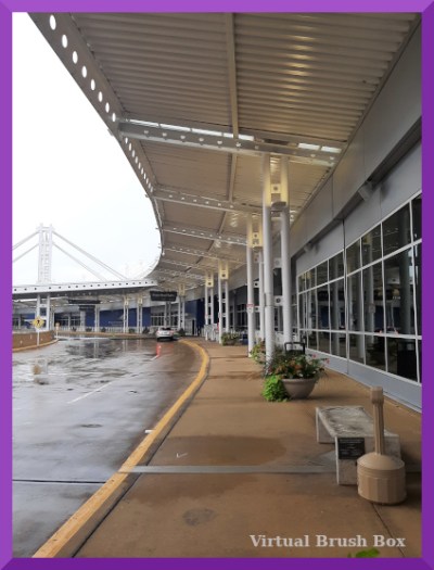 The fat horseshoe shape in the route map is the roof. The larger arcs are the arrival & departure sidewalks, mostly departure due to better GPS. Given the slightest amount of automotive traffic, I would have gotten off the roof. Not even a mouse. I passed a few cars on the ramp while separated by a waist-high concrete barrier.