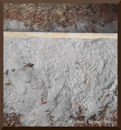 We chose to make the step obvious so the horses would see it and step over it, rather than a narrow lip that might catch their feet. Sloped on the outside to direct rain away (crosses fingers).