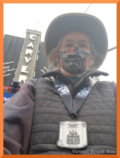 The most masked activity I have been to yet, despite being outside. Spotted my first N95 in the wild. Some folks walked with masks. As with previous IRL walk, I wore mine in the – very loose- crowds at the start and finish. During the walk itself, I removed them and then made sure I stayed at least 10 feet from another person. I do have N95s to wear. I’m saving the fancy masks for indoor situations that I can’t avoid. My reading of the charts says cloth + surgical works well enough for outside. [Magic City 5K 2021]