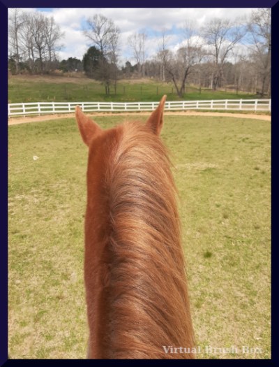 Bingo is the beginner up-down horse who does double duty for in-the-saddle exercise sessions. As I posted without stirrups, I noticed that I kept pitching up and to the right. I had gotten the habit of being crooked to match my crooked horse.