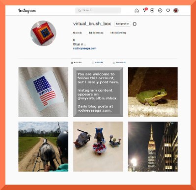 This was my Instagram page from November 2018 to now. Actually, it was more complicated than that. Instagram shut this account down. I started another one. And so on. [Contact]