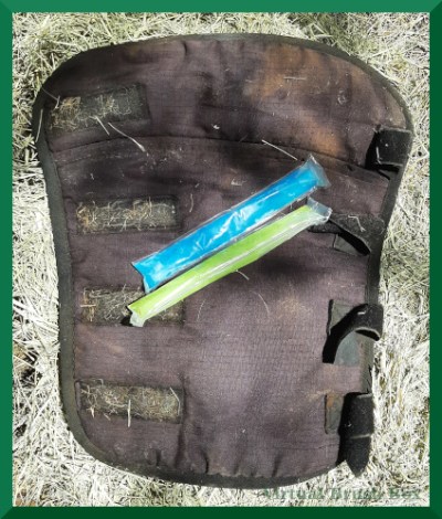 I use 2 pops on each side of the leg, meaning 4 pops per leg, two legs a time, swap out 8 new frozen new pops for the back legs. I’m glad I have the economy-sized bag of ice pops, which I only bought because that’s what the store had.