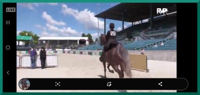 Screenshot. Stepping Stone Farm rider enters the ring at Kentucky Horse Park.