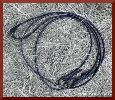 Lovely, narrow 3/8″ curb reins from Fennel’s. To go with my dual steering set-up. [Riding With Two Reins]