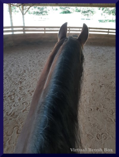 My right hand has been drifting upward in recent lessons. Not sure why. None of these things happen in isolation. So I pondered. I decided that I turn my body in toward the circle instead of staying square to the tangent. I doing so, I lean. Therefore, the right hand drifts up. It’s always the right hand because my right hand is always the outside hand to start because ASB lesson always start in same direction, i.e. first direction, i.e. counterclockwise.