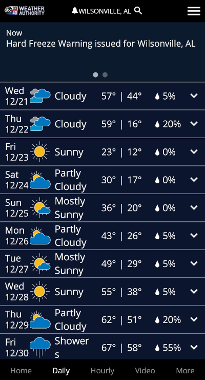 A 43o drop? Three nights in the teens? Two days not above freezing? That is so not Alabama.
