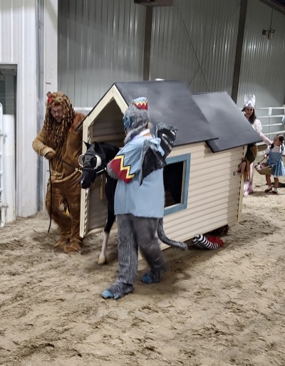 The costumes were elaborate, with whole families dressed to a theme – there’s a pony carrying this full-sized shed (meant to be Dorothy’s Kansas house).