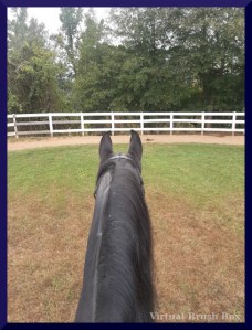 Note. My phone camera has a weird setting for portraits that – as far as I tell – exists for the sole purpose of making everything blurry. Would rip it off of my phone if I could. I did not notice the phone camera was in this mode until I got home after. Hence the ears photo from my lesson with Bubba this year did not turn out. Used photo from the time before that, which was December of 2022. [Rubber Ducky, process notes]
