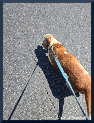 We have changed Jasmine’s water dish from a standard dog dish to a square cooking pan. Easier for her to get into. Less likely to get tipped over.