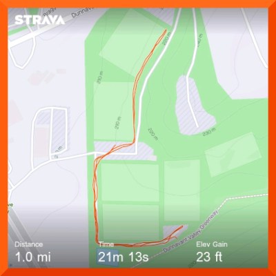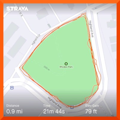 “Unofficial reputation as a neighborhood dog park.” Bham Wiki: Rhodes Park. Definitely. The little indent at approximately 4 o’clock on the inner loop (upper) Strava map is where I walked over to kick a soccer ball back to the furry participants. The square detour at 10 o’clock in the inner loop is the entrance plaza from the tile photos.