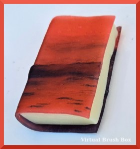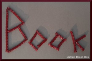 Edible book made a tortilla cover, muenster cheese slice pages, and muenster cheese trimming lettering. The blue box is a platform to keep the light brown-colored book from disappearing into the hay.
