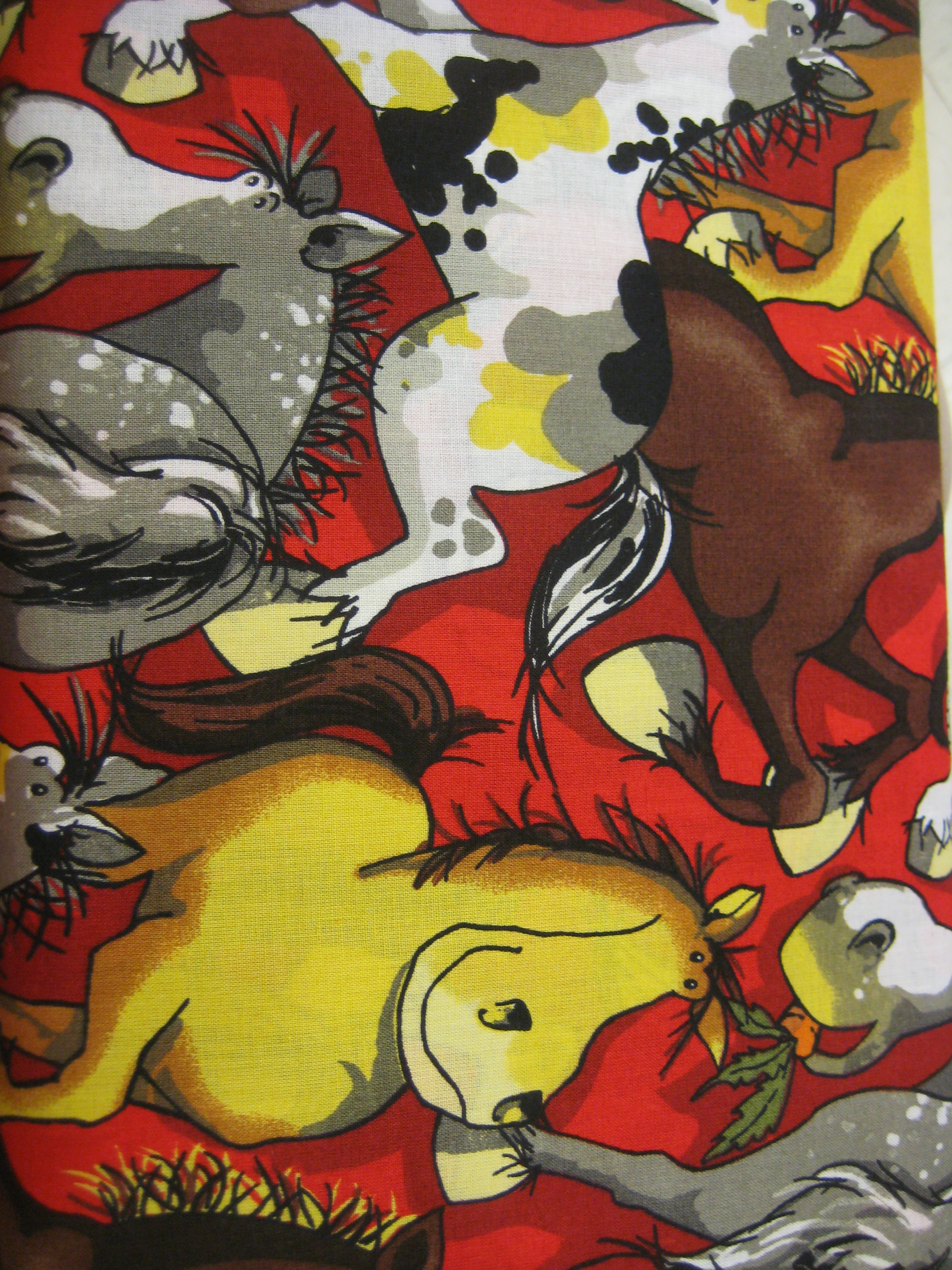 Musical chairs was done with grain bags. Riders had to dismount and stand on a bag. Of course, with all the running and screaming and being up so far past their bedtimes, the school horses were completely wired. They were having nothing to do with those crinkly sacks. Picture horses backing all over the ring, towing dismounted riders by the reins. This made the audience laugh harder, creating more noise to bounce off the roof and walls of the indoors. The culmination of musical chairs came one of the guys launched from his horse headfirst onto the remaining sack.