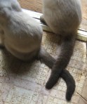 Down vest in corner of photo may explain the sudden excess of kitten friendliness.